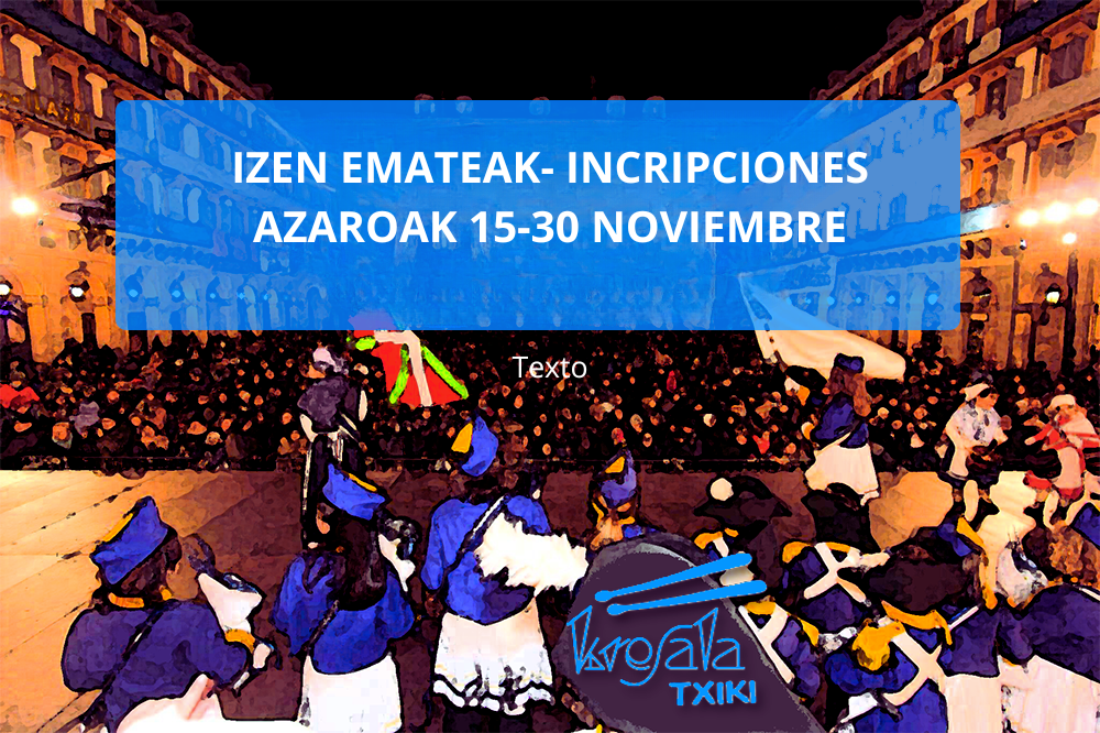 IZEN EMATEA: Azaroak 15 etik azaroarenaren 30 ra (biak barne)  IZEN EMANDAKOEN BEHIN BEINEKO ZERRENDA: Abenduaren 1 ean (erreklamazioak abenduak 1 eta 2 an soilik onartuko [...]